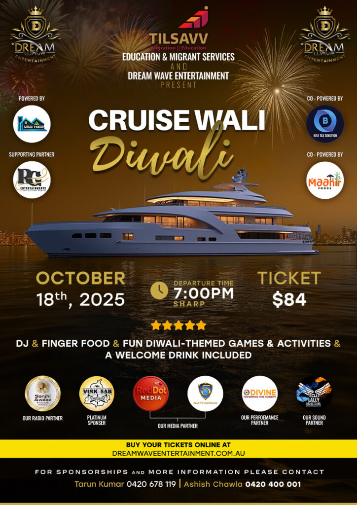 This Diwali, leave the usual behind and step into a one-of-a-kind celebration aboard the luxurious Victoria Star Cruise in Docklands. Join us on Saturday, October 18 at 7 PM for Cruise Wali Diwali, where tradition meets modern celebration on the open water.